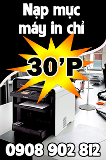 ==>> Nếu quý khách cần dịch vụ nạp mực máy in tận nơi tại các quận, huyện trong TP.HCM, xin vui lòng liên hệ với chúng tôi qua số HOTLINE/ZALO: 0908 902 812 - 0902 330 046 để được tư vấn và phục vụ nhanh chóng. Chúng tôi cam kết sẽ đến gặp quý khách trong thời gian ngắn nhất từ (20-30) phút sau khi nhận được yêu cầu. Đội ngũ của chúng tôi sẽ đến địa điểm của quý khách để nạp mực cho máy in một cách nhanh chóng và hiệu quả nhất.